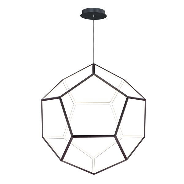Formed by a series of Black pentagons into a spherical shape, this geometric collection is illuminated from the inside for a dramatic lighting effect. Available in 3 sizes ranging from 22" to the dramatic 40" large pendant.