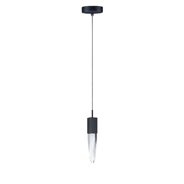 Stalactites of Clear Beveled crystal suspend from your choice of Polished Chrome or Black supports, can be hung at various heights to create a spectacular array. The crystal shimmers as light diffuses through the facets powered by 90 CRI LED dimmable modules.