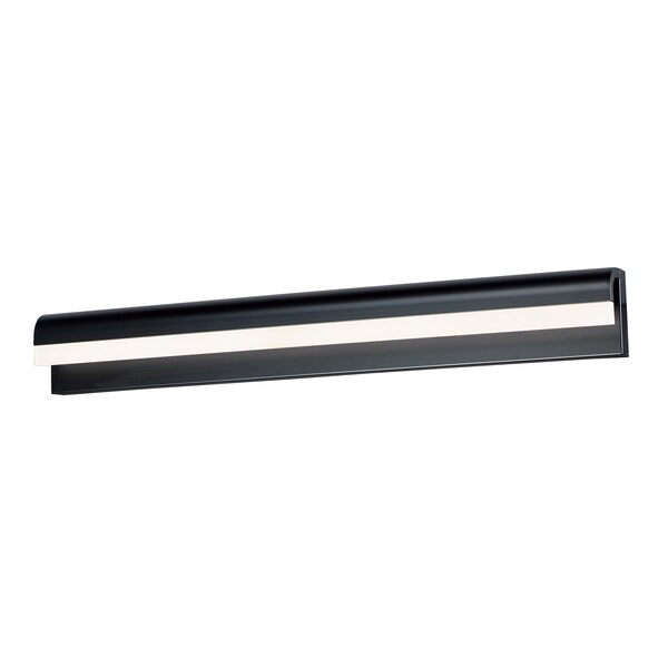 An aluminum frame of Polished Chrome or Black, cascades downward and supports a frosted acrylic diffuser which nicely diffuses the light from the LED enclosed. A perfect complement to the similar bath hardware found in many homes today.