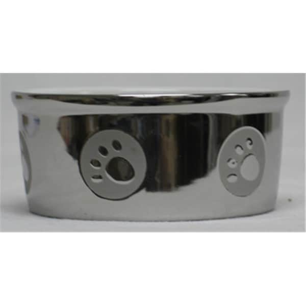 5 in Paw Print Titanium Dog Dish - Silver - 6828