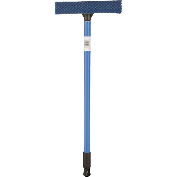Lightweight plastic 8 head that will not rust. Durable rubber blade. Tough nylon netting for easy bug removal. Absorbent sponge wrapped in honeycomb scrubbing nylon holds washing liquid and loosen dirt. Blue 16 metal handle. Scrub flip and squeegee.