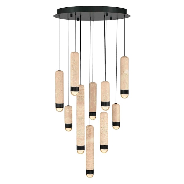 Cambre, Chandelier , 10-Light, 22", Matte Black, Travertine