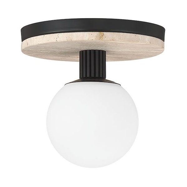 Carnagie, Flush Mount, 8", Matte Black, Opal Etched Glass