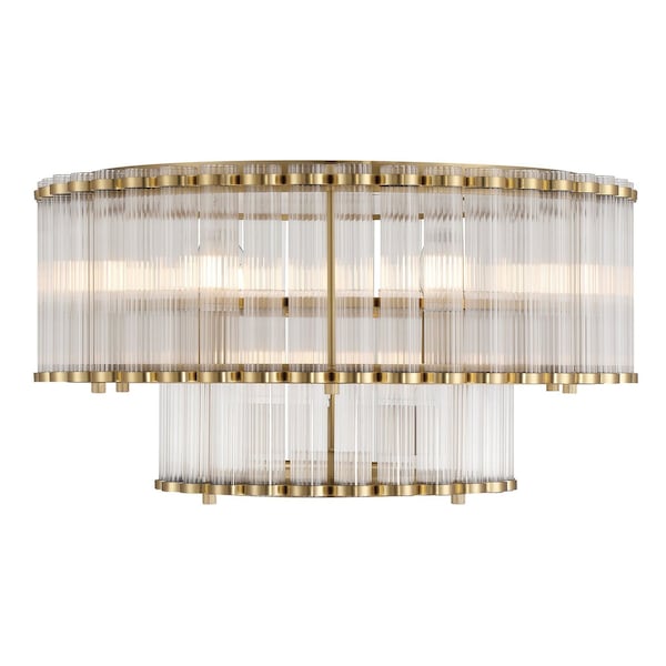 Glasbury, Flush Mount, 9-Light, 24", Gold, Ribbed Glass
