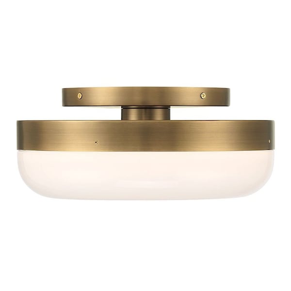 Harwel, Flush Mount, 12", Antique Brass, White Glass