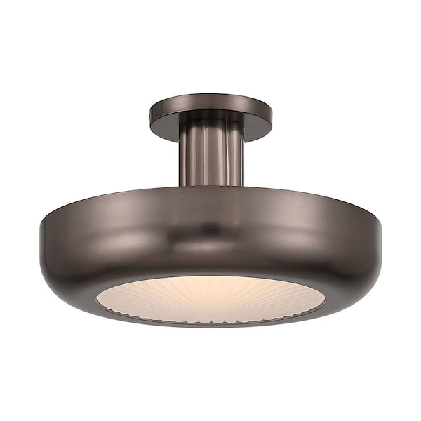 Macey, Flush Mount, 16", Harlow Bronze, Etched Glass