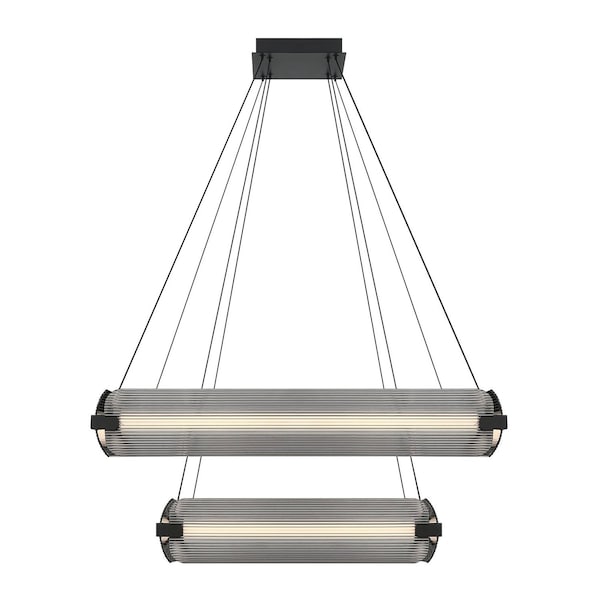 Neoness, Chandelier, 8-Light, 34", Matte Black, Smoked Glass