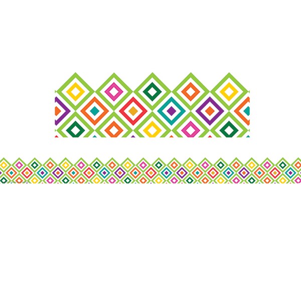 Use Eureka School Extra Wide Deco Trim to add a finishing border to your displays, windows, doorways or chalkboards. Vibrant colors plus a variety of styles and themes can add creativity to displays, windows, chalkboards and more. Full color illustration printed on card stock. Fun die-cut edge detailing. Coordinates with the A Sharp Bunch Collection. A Sharp Bunch Diamond Pattern Extra Wide Die Cut Deco Trim measures 3.25" wide, and each package contains 12 strips (each 37" long) for a total of 37 feet. Sold as 6 packs for a total of 72 strips (222 feet).