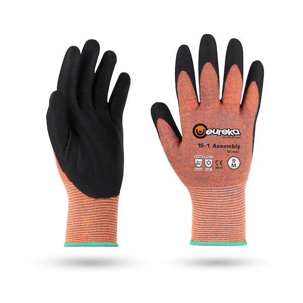Thin and Warm Gloves, High Dexterity, Reflective print for High Visibility, Size 9