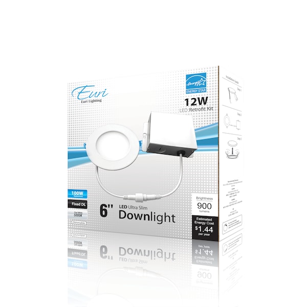 Compact and convenient, this 6 in. LED downlight is designed for quick and easy installation anywhere. With spring action clips and a separate junction box, this ultra-slim downlight is the perfect choice for recessed lighting. ENERGY STAR Certified, IC-rated and dimmable, the DLC6S-2050e triumphs over standard incandescent or fluorescent lighting. Guaranteed to save energy with every switch on, this LED downlight is available in Soft White (3000K), Bright White (4000K) and Cool White (5000K) see Euri Lighting DLC6S-2000e and DLC6S-2040e.