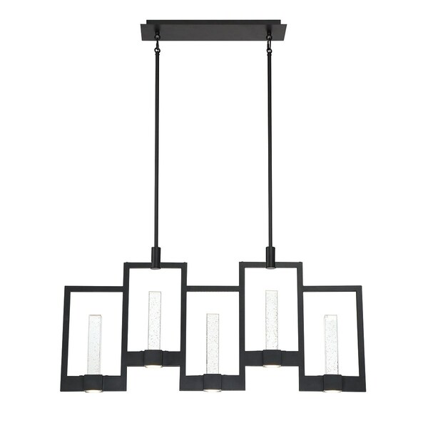 36W/LED 3000K/2880lm (dimmable), Clear seeded glass prisms included, Includes 57" of total downrods, Rated for dry locations