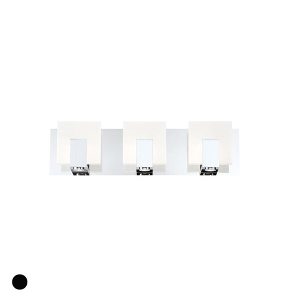 Illuminated frosted acrylic diffusers vertically seated on a chrome frame housing a subtle LED downlight