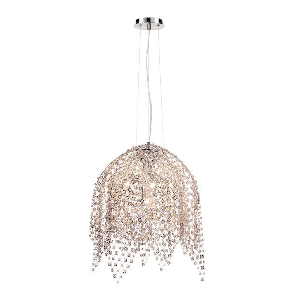 Cascading metal and handmade crystal chain, formed on a polished chrome frame