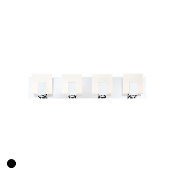 Illuminated frosted acrylic diffusers vertically seated on a chrome frame housing a subtle LED downlight