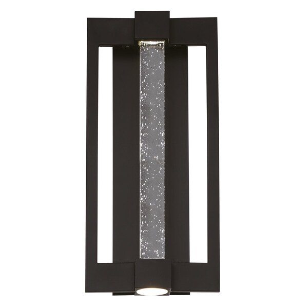 Bold black framing houses a clear seeded glass prism