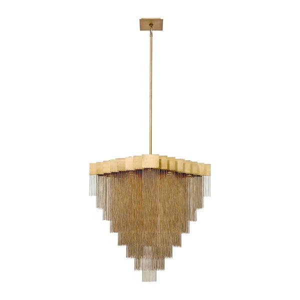 81W/LED 3000K/3900lm (dimmable), Gold metal chains, Includes 57" of total dowrods, Rated for dry locations