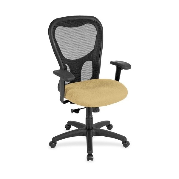 Apollo Synchro High Back Chair combines comfort, adjustability and quality for seating well-suited for long hours at the office. Breathable, black mesh back conforms to yours for the right amount of support. Cushioned seat is comfortably contoured. Waterfall seat front of cushion slopes to reduce pressure on the back of the knees. Tilt-tension control recline rate adapts to weight of user. Tilt lock locks out tilt function. Synchro-tilt back reclines in a preset ratio to seat. Seat-height adjustment sets seat height from 18.9in to 22.4in for your preferred position relative to floor. Width-adjustable arms adjust arms in or out for proper ergonomic positioning. Arm-height adjustment adjusts arm up or down for proper ergonomic positioning while seated. Chair also features casters on the black nylon, five-star base for easy mobility. Seat measures 20.5in x 19''. Back size is 21.7in x 23''.