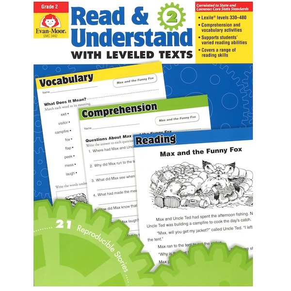The 25 engaging reading selections in Read & Understand with Leveled Texts, Grade 2 are leveled according to Lexile® criteria, so you can easily match texts to students' abilities. Reading selections cover reading levels 330—480 and are accompanied by follow-up activities for comprehension, vocabulary, and other reading skills.