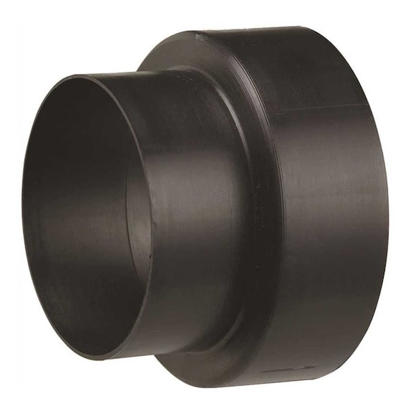 The Duct to Duct Increaser connects 3 in. to 4 in. ducts together. It is ideal for bathroom fan exhaust applications. Finished in black color. The increaser is designed to be a tight fit to reduce air leaks in the connections. When using the increaser with a 3 in or 4 in snap pipe aluminum or galvanized , it may be necessary to unsnap the receiving end of the pipe, then insert the increaser and snap the pipe back together.Made of polypropyleneUsed when your exhaust port or exhaust hood needs to be increased from 3 in. to accommodate a 4 in. ductConsult your local building codes for approved installation practicesLight weight design