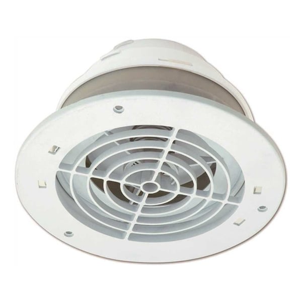 The Soffit Exhaust Vent is ideal for exhausting bathroom and kitchen fans through the soffit of your home. This product includes a frost free damper system that will not freeze in cold temperatures. Its stylish flush mount design and leak proof collar to duct connection help to prevent moist air back draft.Fits 4 in. 5 in. and 6 in. ductsOuter grill and flap help prevent pests from entering your homeMade of polypropyleneCan be painted to match your soffit colorProduct has an outer grill and flap preventing pests from entering your home through the ductLike many of our other products, the soffit exhaust vent has a UV resistant coating to prevent the cap from discoloring and is paintable to match the soffit of your home