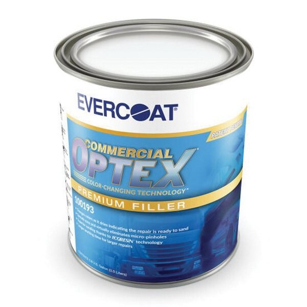 Commercial Optex with color changing technology is an ultra-premium commercial filler with extended working time that helps commercial shops work larger areas and save time and money. There's no second guessing once mixed with cream hardener, Optex changes from pink to green indicating the repair is ready to sand. Formulated with Evercoat's patented Ecoresin technology, Optex offers superior adhesion to a broad range of substrates and unparalleled sanding properties.