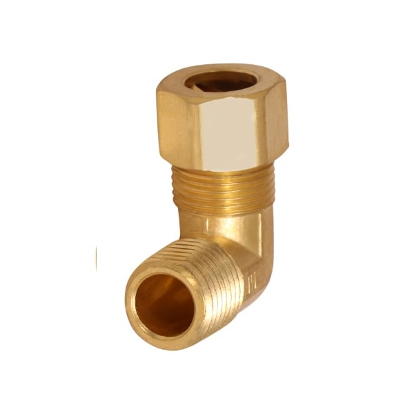 1/2 O.D. COMP x 3/8 MIP Reducing 90 Degree Elbow Pipe Fitting, Lead Free Brass