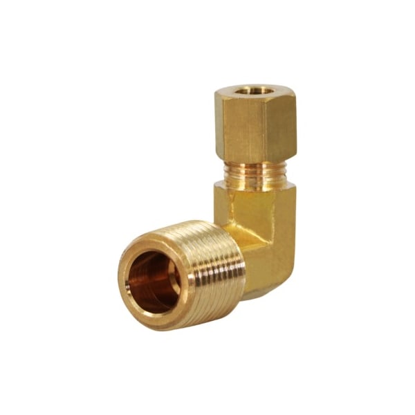 1/4 O.D. COMP x 3/8 MIP Reducing 90 Degree Elbow Pipe Fitting, Lead Free Brass