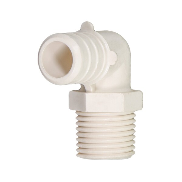 3/4'' PEX Barb x 1/2'' MIP 90 Degree Elbow Pipe Fitting; Plastic Poly Alloy