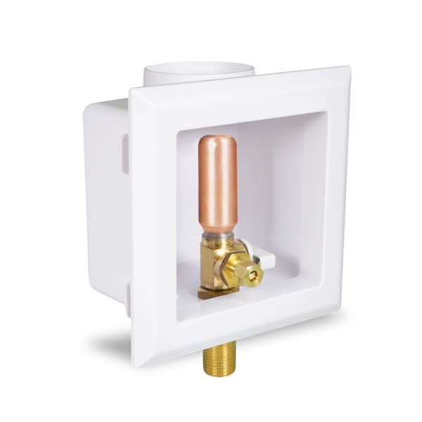Icemaker Outlet Box W/ Hammer Arrester, 1/2'' MIP/SWT, White ABS (Single)