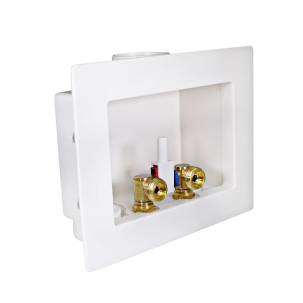 Washing Machine Outlet Box, Dual Drain, Assembled W/ 1/2'' CPVC Valves, White ABS