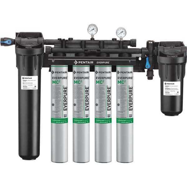 Water Filtration System, Reduces Bacteria, Chlorine Odor, Chlorine Taste, Cyst, Scale, Sediment, Micron Rating 0.5 micron, Connection Size 3/4 in, Overall Height 25 1/2 in, Width 34 in, Service Life 36,000 gal, Includes Valve Valve Included, Flow Rate 6.7 gpm, Application Food Services, Color Black, Silver, Compatible Mfr. Model Number Not Applicable, Connection Gender Female, Connection Type NPT, Depth 6 3/4 in, Filter Media Carbon, Head Material Plastic, Housing Material Aluminum