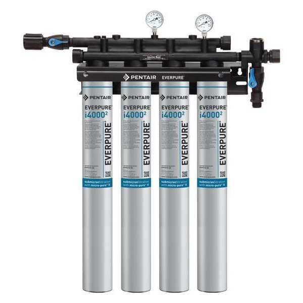 Water Filtration System, Reduces Bacteria, Chlorine Odor, Chlorine Taste, Cyst, Scale, Sediment, Micron Rating 0.5 micron, Connection Size 3/4 in, Overall Height 29 3/4 in, Width 24 1/2 in, Service Life 48,000 gal, Includes Valve Valve Included, Flow Rate 6.7 gpm, Application Ice Machines, Color Black, Silver, Compatible Mfr. Model Number Not Applicable, Connection Gender Female, Connection Type NPT, Depth 5 1/2 in, Filter Media Carbon, Head Material Plastic, Housing Material Aluminum