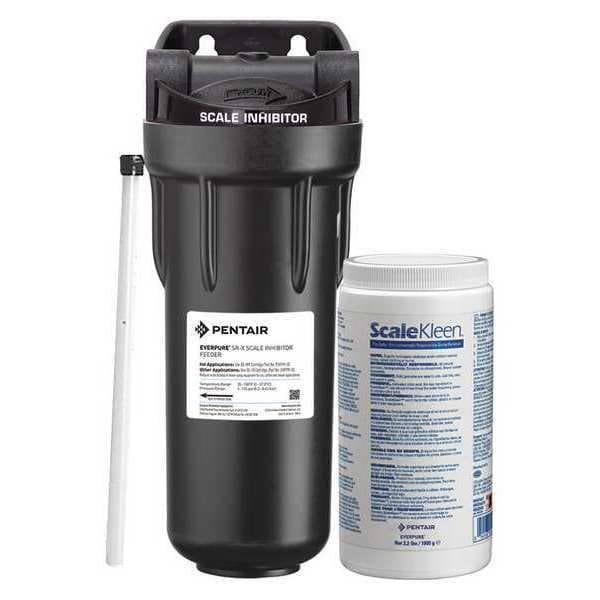 Water Filtration System, Reduces Scale, Micron Rating Not Rated, Connection Size 3/4 in, Overall Height 12 1/2 in, Width 5 1/4 in, Service Life Not Applicable, Includes Valve Valve Not Included, Flow Rate 6 gpm, Application Scale Inhibition, Color Black, Compatible Mfr. Model Number Not Applicable, Connection Type NPT, Depth 5 1/2 in, Filter Media Hydro Blend, Head Material Plastic, Housing Material Plastic, Includes Filter, Head, Mounting Bracket, Scale Kleen, Includes Gauge Gauge Not Included
