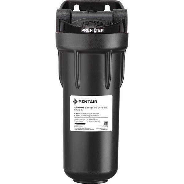 Water Filtration System, Reduces Sediment, Micron Rating 10 micron, Connection Size 3/4 in, Overall Height 12 1/2 in, Width 5 1/4 in, Service Life 9,000 gal, Includes Valve Valve Not Included, Flow Rate 4 gpm, Application Food Services, Color Black, Compatible Mfr. Model Number Not Applicable, Connection Type NPT, Depth 5 1/2 in, Filter Media Tightly Spun Prefilter, Head Material Plastic, Housing Material Plastic, Includes Filter Cartridge, Includes Gauge Gauge Not Included