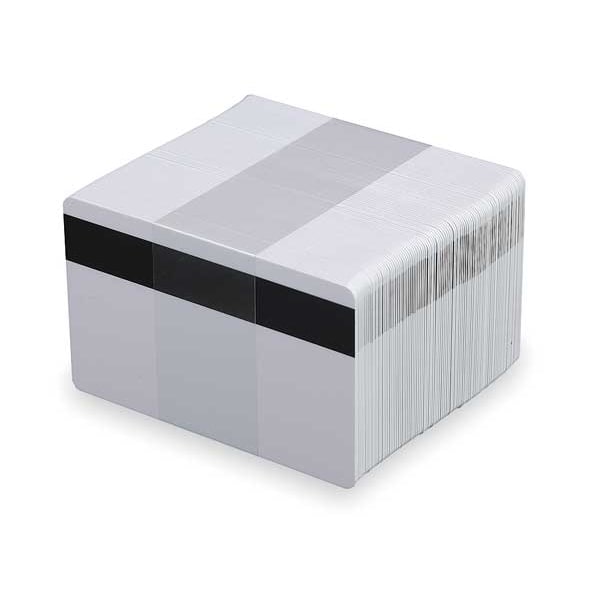 Blank ID Cards, Card Type PVC with HICO Magnetic Strip, Card Thickness 30mil, Height (In.) 2-1/8, Width (In.) 3-1/2, Depth (In.) 3, Color White, For Use With Tattoo 2, Pebble 4, Dualys 3 or Securion, Package Quantity 100
