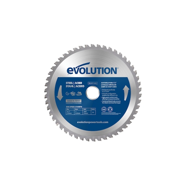 Evolution's 8-1/4” 50-tooth mild steel cutting blade uses the highest-grade carbide for increased durability, hardened blade body to ensure the blade runs truer for longer, and ultra-high grade brazing techniques. These make it the ideal choice for cutting mild steel and ferrous metals. Leaving an instantly workable finish and producing virtually no heat, burrs, or sparks. Common applications include square tube, angle iron, mild steel plate, pipe, and tube.