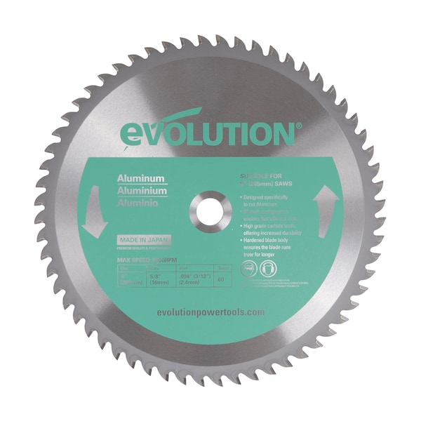 Evolution's 8” 60-tooth aluminum cutting blade uses the highest-grade carbide for increased durability, hardened blade bodies to ensure the blade runs truer for longer, and ultra-high grade brazing techniques. These make it the ideal choice for cutting aluminum and other non-ferrous metals. Leaving an instantly workable finish and producing virtually no heat, burrs, or sparks. Common applications include grating, extrusions, pipe, and tubing.