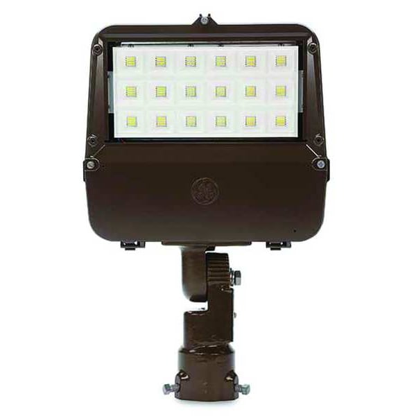 Floodlight, Lumens 10,000 lm, Fixture Wattage 64 W, Voltage 120 to 277V AC, Light Distribution Shape NEMA 7x6, LED Replacement For 250W HPS/250 to 400W MH, Fixture Sensor Type No Sensor Included, Light Technology LED, Fixture Mounting Location Pole, Mount Type Slipfitter/Knuckle, Color Temperature 5000K, Color Rendering Index 70, Height 5 1/8 in, Width 16 3/8 in, Suggested Lamp Item No. Not Applicable, Fixture Housing Color Bronze, Fixture Housing Material Die-Cast Aluminum