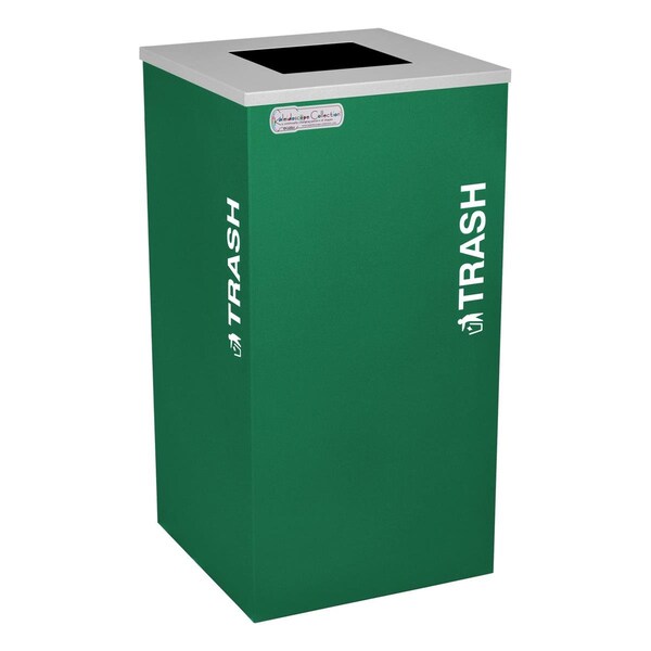 24 gal Square Waste Receptacle, Silver, Green