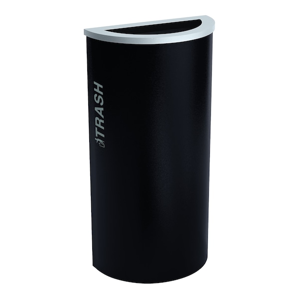 8-Gal. Half-Round Trash Receptacle - Steel, Pebble Black Gloss