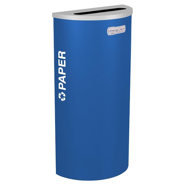 8-gal recycling receptacle- half round top and Plastic decal- Royal Blue Texture finish