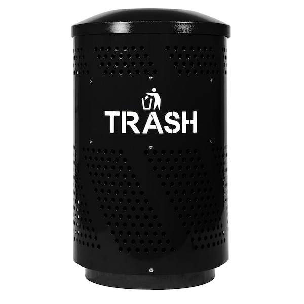 Arena-Perforated 51-Gal. Trash Receptacle, Black Gloss