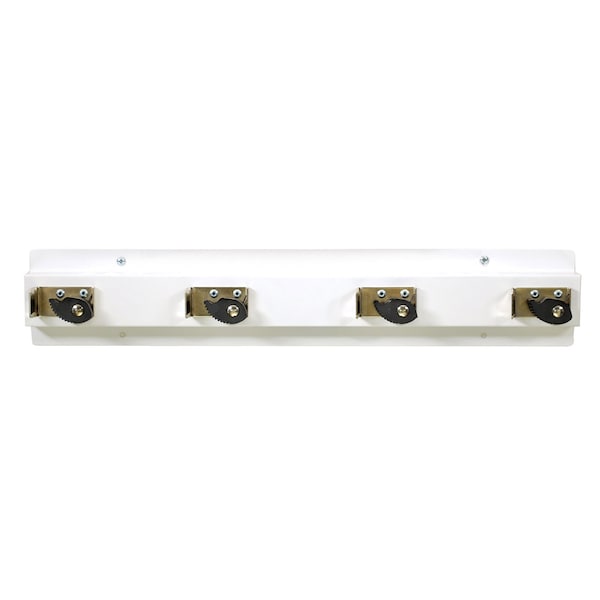 Economy 24in channel mop & broom holder with 4 cams in White Gloss finish. Organize your janitor closet with EX-CELLfts stainless steel channel mop and broom holders. Heavy-duty, spring activated rubber cams ensure your supplies wonftt wind up on the floor. Stainless steel channel holds your mops and brooms 3in away from doors and walls. Hardware included for mounting