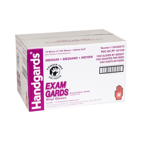 Handgards Exam Gards Powder Free Medium Vinyl Glove, PK1000