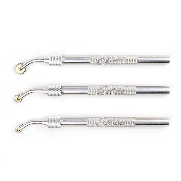 Both professionals and hobbiest, rejoice! The Excel Blades' Excel Blades is set to become your next favorite tool! This trace wheel creates 24 perforations per inch,is designed for perforating, dotting, imprinting, tracing, quilting, embossing, overstitching,and is 1/4 in. in diameter. The item # 30606 is made of aluminum.