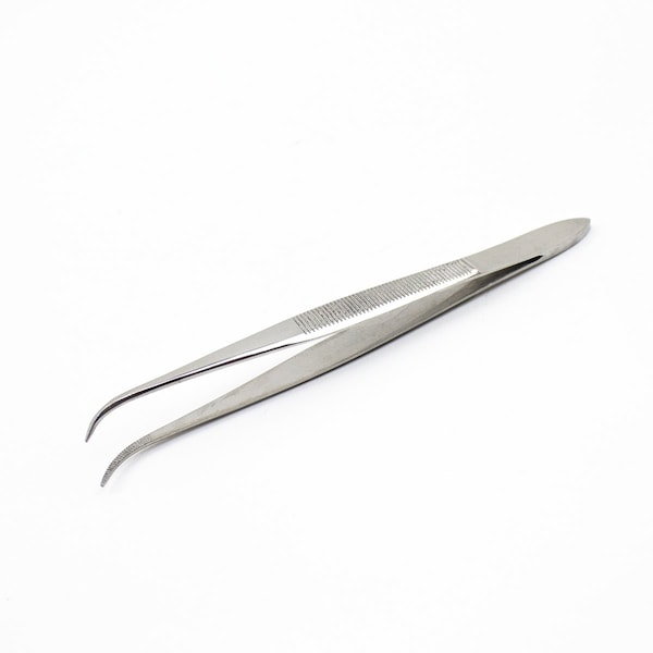 Ultra-Thin Curved Point Tweezers, 4.5in. Fine Tip Stainless Steel 12pk