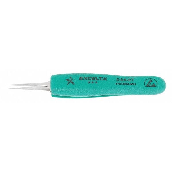 Tweezers, Compatible Wire Thickness - Maximum Not Applicable, Grip Style Cushioned, Material Stainless Steel, Overall Length 4 3/4 in, Product Type Conventional, Resistance Properties Acid, Corrosion, Magnetic, Tip Angle Not Applicable, Tip Material Stainless Steel, Tip Shape Point, Tip Style Relieved, Tip Texture Smooth, Tip Thickness 0.1 mm, Tip Width 0.05 mm, Trade Number 5, Features Ergo-Tweeze(R) TealShield(TM) Antimicrobial Soft Cushioned Grips