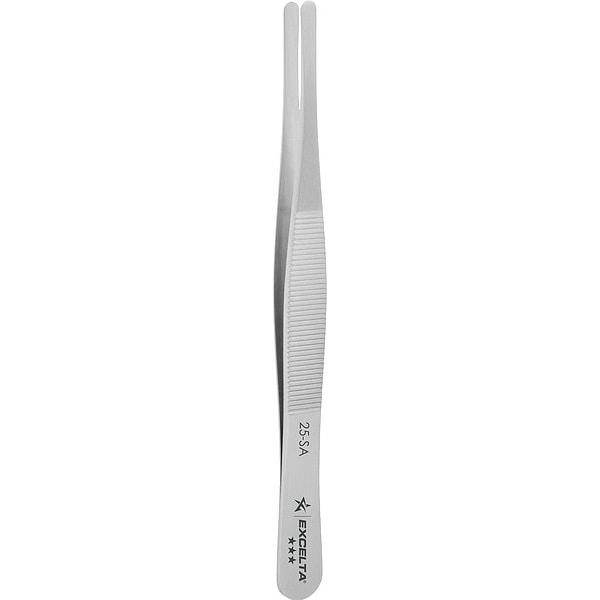 Tweezers, Compatible Wire Thickness - Maximum Not Applicable, Grip Style Plain, Material Stainless Steel, Overall Length 4 3/4 in, Product Type Conventional, Resistance Properties Acid, Magnetic, Corrosion, Tip Angle 180 Degrees , Tip Material Stainless Steel, Tip Shape Point, Tip Style Straight, Tip Texture Serrated, Tip Thickness 0.016 in, Tip Width 0.137 in, Trade Number 25-SA, Features Serrated Handles for Better Control, Broad Points Are Great for Handling Larger Flat Items, Standards AISI