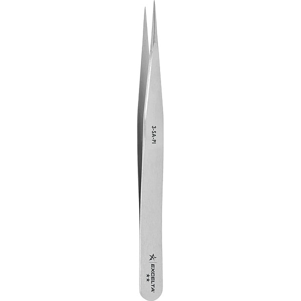 Tweezers, Compatible Wire Thickness - Maximum Not Applicable, Grip Style Plain, Material Stainless Steel, Overall Length 4 3/4 in, Product Type Precision, Resistance Properties Acid, Magnetic, Corrosion, Tip Angle 180 Degrees , Tip Material Stainless Steel, Tip Shape Point, Tip Style Straight, Tip Texture Serrated, Trade Number 3-SA, Features Designed for Work Under Light Magnification, Serrated Handles, Standards AISI