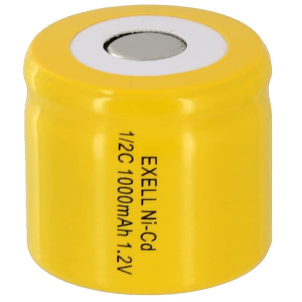 Exell 1/2C NiCD 1000mAh 1.2V Flat top Rechargeable Battery Consumer Applications: Widely used in radio controlled devices, electric tools and toys, electric mopeds, meters, two radios, hybrid automobiles, electric razors, toothbrushes, cameras, camcorders, mobile phones, pagers, instruments/equipment, high power static applications Telecoms, UPS and Smart grid, and numerous other applications. Exell 1/2C NiCD 1000mAh 1.2V Flat top Rechargeable Battery Specifications Voltage: 1.2V Amperage: 1000mAh Chemistry: Nickel Cadium NiCD Height: 0.94in Diameter: 1.02in Terminal Types: Flat Top NiCD Assembly Cell Battery Information Excellent quality and provide constant power electric current for your power hungry devices and some solar lights and solar applications. Low internal resistance, ideal for rapid high current discharge Excellent battery cycle life: 1000 times Ni-Cad battery can be charged and discharged for up to 1000 times Environmentally Friendly Ni-Cad can be recycled If use once a day, Ni-Cad batteries can last up to 3 years. It is a good practice to do deep-discharge or complete discharge at least once 4 to 8 weeks. Deep discharge complete discharge is important for Ni-Cad not to develop memory effects. Compared with other types of rechargeable cells, Ni-Cad batteries offer good cycle life and performance at low temperatures with a fair capacity but its significant advantage is the ability to deliver practically its full rated capacity at high discharge rates discharging in one hour or less